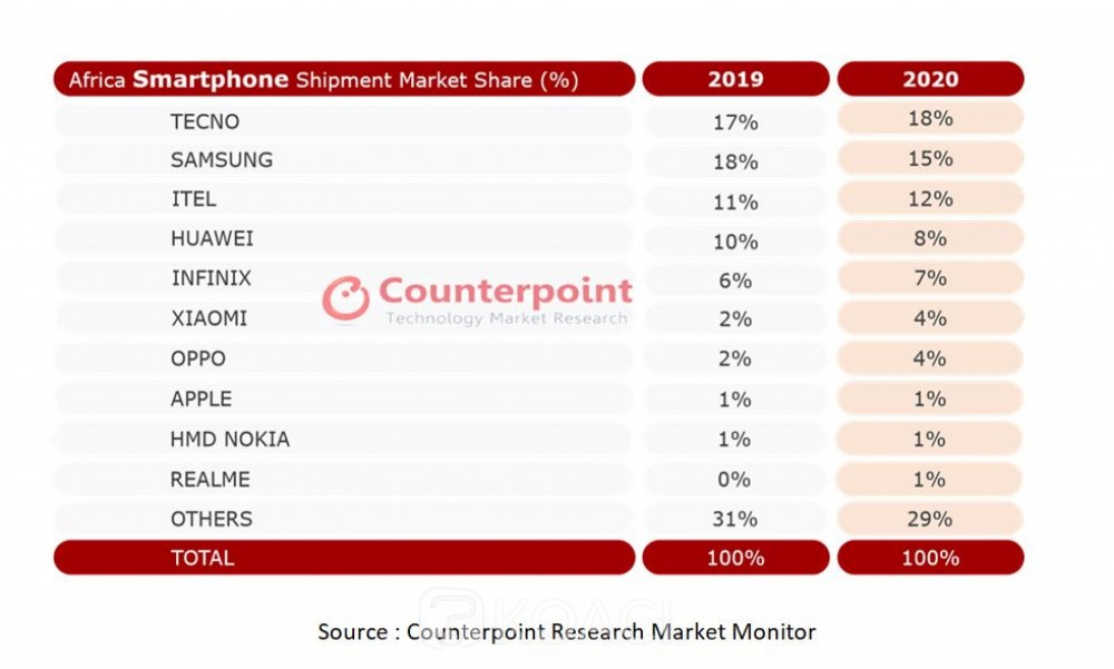 L’année démarre en beauté pour le géant de la téléphonie mobile TECNO et le dernier rapport de Counterpoint publier en AVRIL 2021 nous l’atteste.