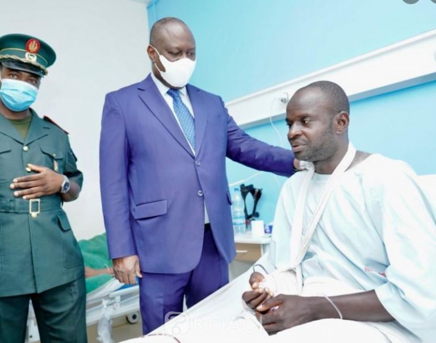 Le ministre Téné Birahima ici au chevet d’un blessé à HMA jeudi dernier (Ph)