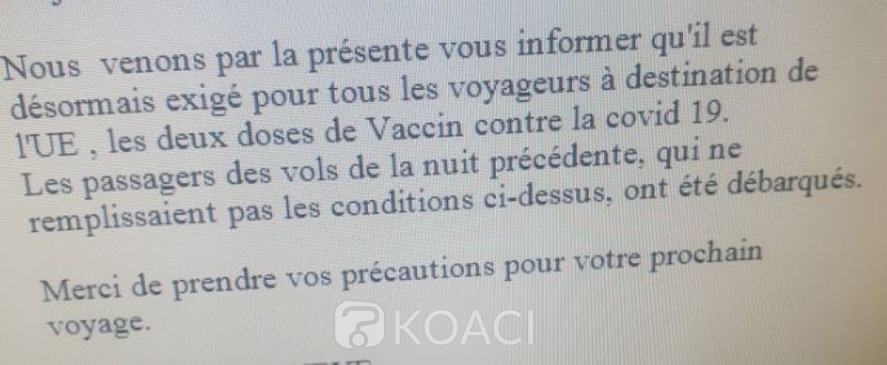 Certains font même croire qu'ils ont été empêchés d'embarquer ces derniers jours pour Paris pour cause de non-vaccination, citant les contrôles de sécurité mis en place par Aeria avant tout départ de Côte d'Ivoire à l'aéroport Félix Houphouët Boigny.