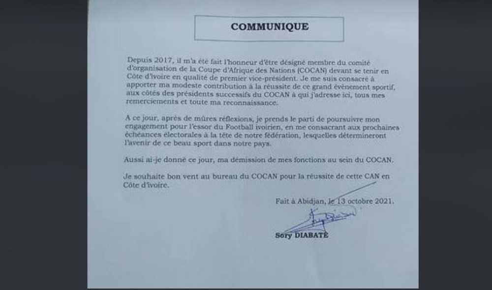 Côte d'Ivoire : COCAN, Sory Diabaté annonce sa démission du comité pour se consacrer à sa candidature à la présidence de la FIF