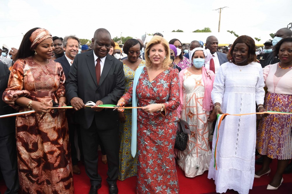 La cérémonie d’inauguration de ce nouveau centre s’est déroulée en présence de M. Téné Birahima Ouattara, Ministre d’Etat, Ministre de la Défense, de M. Adama Karama, Ministre de l’Emploi et de la Protection Sociale et Président du Comité Interministériel de lutte contre la Traite, l’Exploitation et le Travail des Enfants (CIM), de Madame Nassénéba Touré, Ministre de la Femme, de la Famille et de l’Enfants et vice-Présidente du CIM, du Général Issa Coulibaly, Ministre Gouverneur du District des Savanes, de plusieurs membres du Gouvernement, des Ambassadeurs accrédités en Côte d’Ivoire et de plusieurs autres personnalités, ainsi que des populations de Ferkessédougou sorties en grand nombre pour réserver un accueil chaleur à l’épouse du chef de l’Etat.