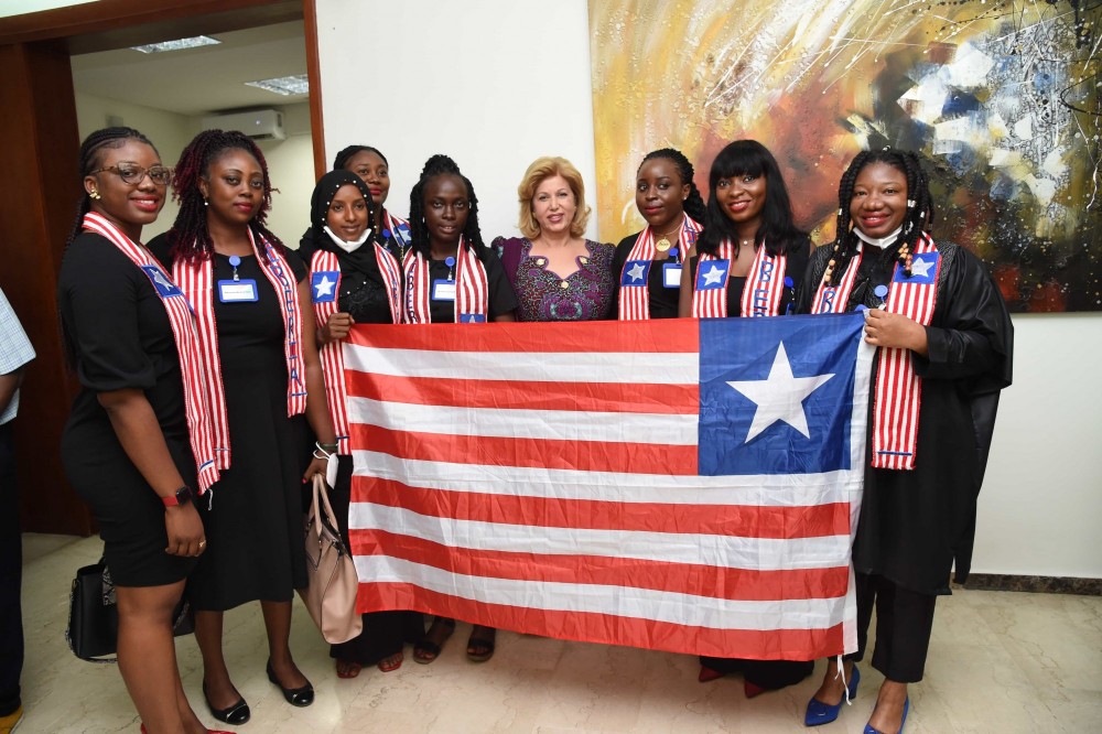 La Première Dame, Madame Dominique Ouattara a échangé avec des jeunes femmes leaders émergentes en politique de l’Union du fleuve Mano, le jeudi 17 mars 2022, à son Cabinet de Cocody.