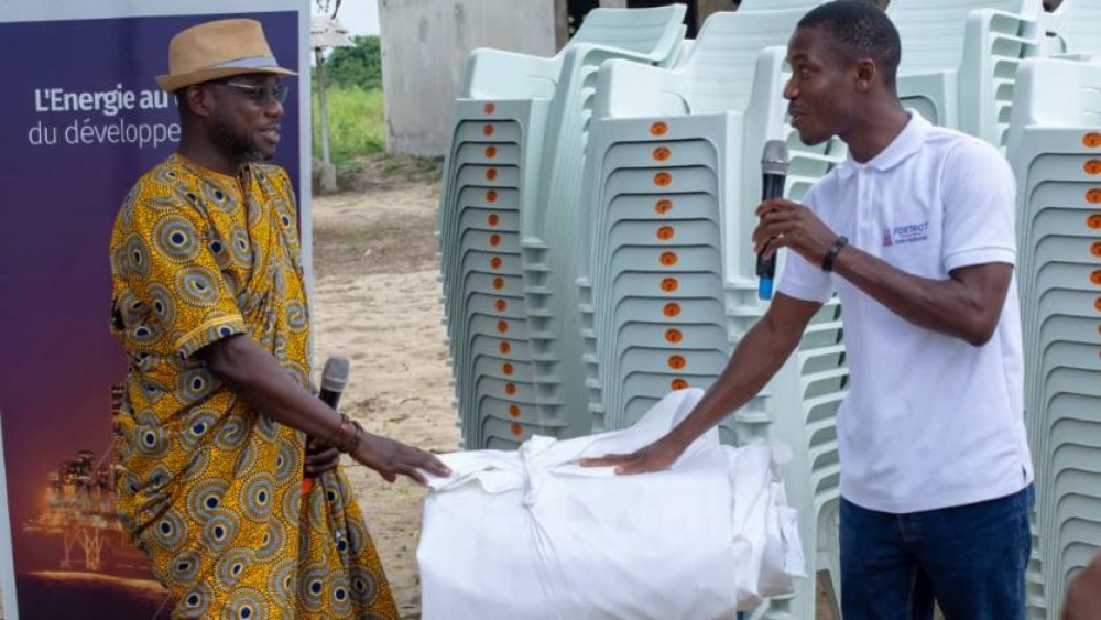 Une délégation de la société Foxtrot conduite par Franck Lognon, agent communautaire, Sociologue représentant le Directeur général de ladite entreprise a sillonné les villages impactés par la construction d'un Pipeline dans les communes de Songon et de Port-Bouët les mains chargées de biens matériels en vue d'entretenir la collaboration avec les différentes communautés.