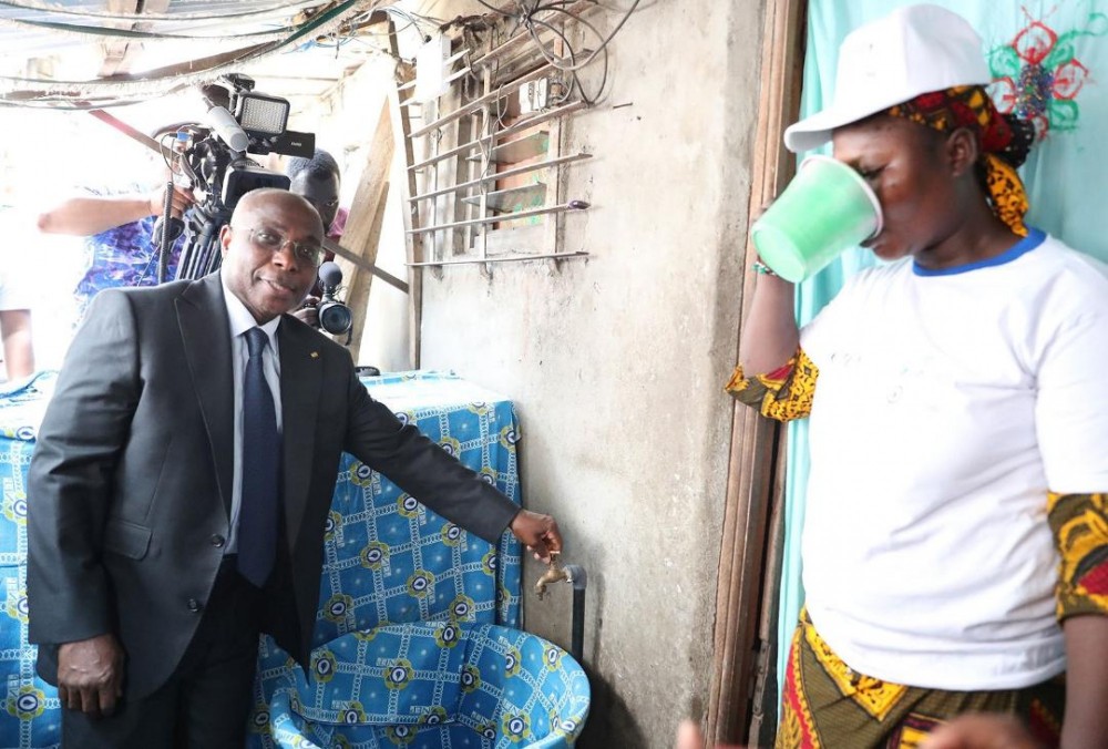 " Aujourd'hui nous sommes à Koumassi-Grand Campement où le gouvernement, à travers l'Agence coréenne de coopération internationale (KOICA), offre 13 541 branchements sociaux au profit des ménages vulnérables. Ce sont plus de 80 000 personnes qui auront accès à l'eau potable ", a indiqué Bouaké Fofana.
