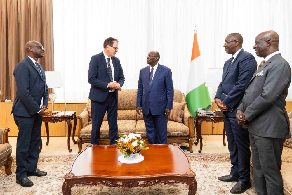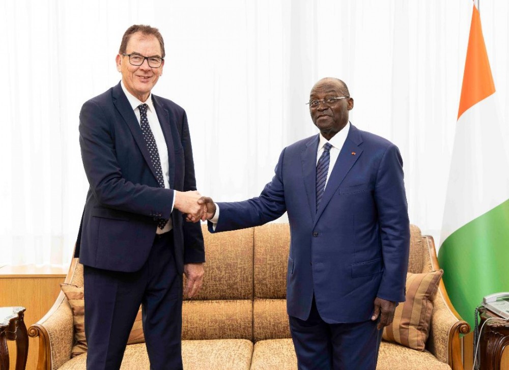 Le Vice-Président de la République, M. Tiémoko Meyliet KONÉ, a échangé, ce jeudi 3 avril 2025, au Palais de la Présidence de la République, avec le Directeur Général de l’Organisation des Nations Unies pour le Développement Industriel (ONUDI), M. Gerd MÜLLER.