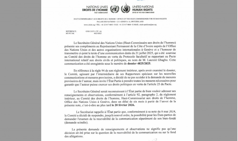 Dans un communiqué en date de ce mercredi 20 aout 2025, comme précédemment pou Tidjane Thiam, l'ONU explique ne pas donner une suite favorable aux demandes de l'ancien président ivoirien.