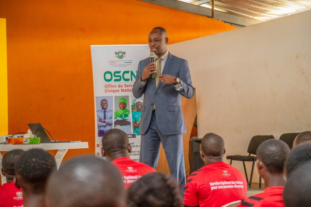 Le top départ de cette formation a été donné par le Directeur Général Adjoint de l’Office du Service Civique National (OSCN), M. Kouamé Fils David, en présence du Directeur du Volontariat, du Bénévolat et du Service National des Jeunes, Dr. Ouattara Katolognan, des encadreurs civils et militaires, ainsi que de 150 jeunes bénévoles pour la paix issus de localités sensibles.