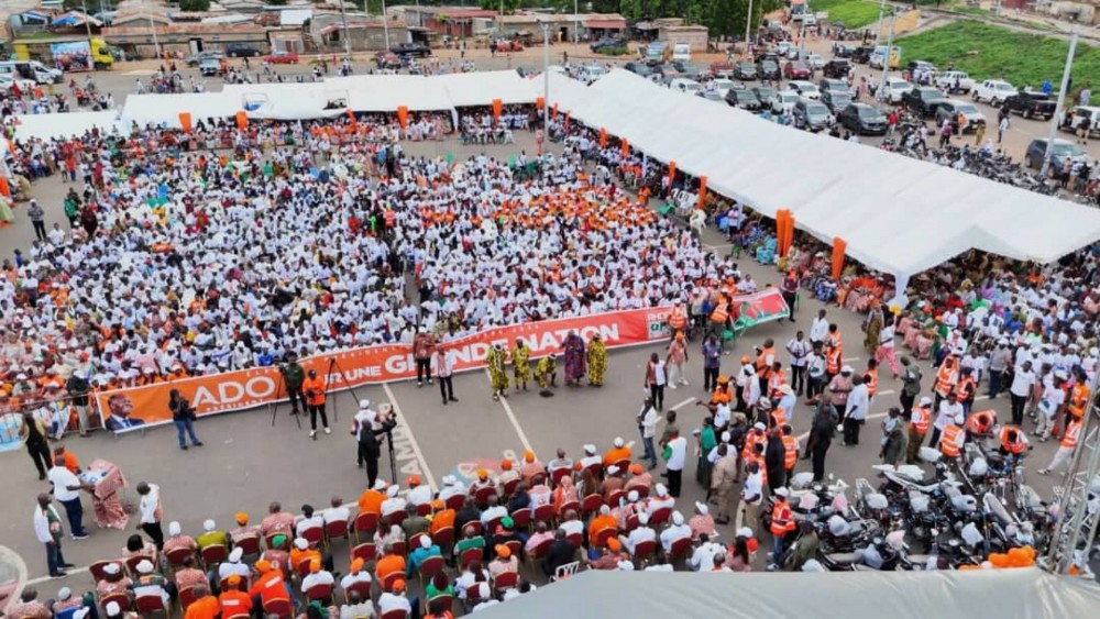 « Nous devons assurer une forte mobilisation et un taux de participation record. Et surtout, offrir le score le plus élevé possible au Président Alassane Ouattara dès le premier tour », a lancé Adama Coulibaly, ovationné par une foule acquise à la cause du parti présidentiel.