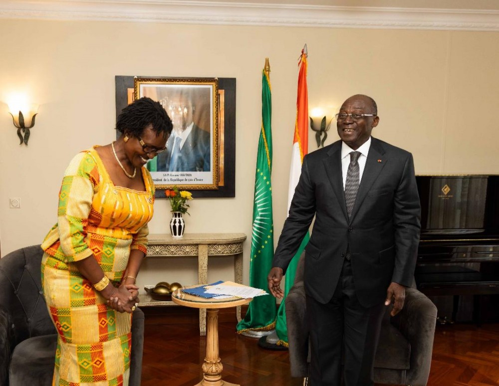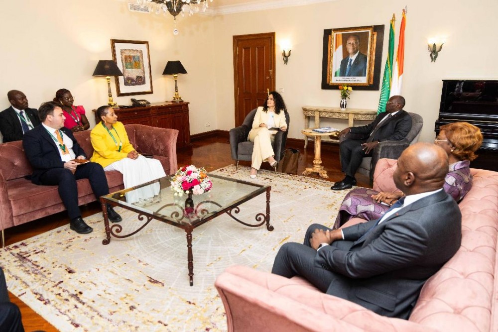 Mme Mafalda DUARTE a indiqué que le partenariat avec la Côte d’Ivoire se porte déjà bien, avec des projets d’investissement en cours d’environ 700 millions de dollars, et qu’il va se renforcer. Elle a aussi annoncé que notre pays pourrait être bientôt choisi pour abriter le bureau régional Afrique francophone du Fonds Vert pour le Climat.