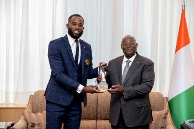 Côte d'Ivoire : Le VPR Tiémoko Koné reçoit le champion du monde de Taekwondo Cheick Sallah...