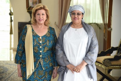 La Première Dame, Madame Dominique Ouattara a eu un échange avec Madame Hadiza Bazoum, Première...