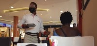 Un serveur masqué en plein service ce dimanche dans un café de Marcory à Abidjan (ph KOACI)Le Ministère de la Santé et de l'Hygiène Publique annonce ce Dimanche 31 Mai 2020, 34 nouveaux cas...
