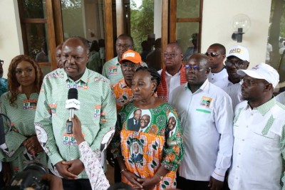 Raymonde Goudou et son équipe (Ph Koaci) Au siège du Rassemblement des Houphouëtistes pour la Démocratie et la Paix (RHDP) de Toum...
